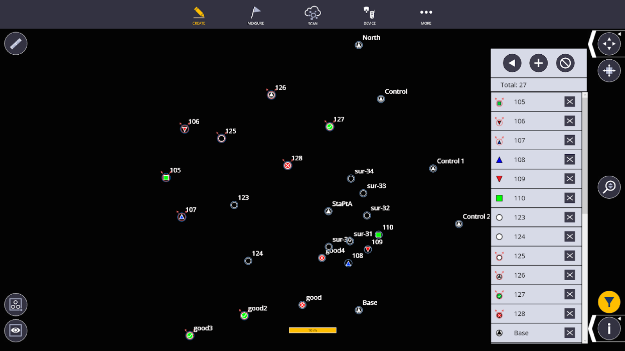 The following point and layout types are compatible with GNSS Out of Precision, and the icons below indicate how each point was collected or staked within FieldLink:
