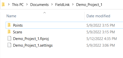 NOTE – The File Explorer structure is different from previous versions of FieldLink. Projects have their own folder within the FieldLink folder.