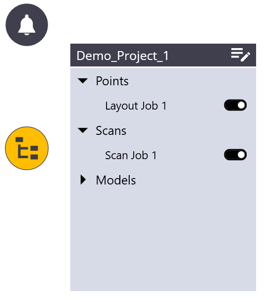 - Points, scans, and models can be accessed using the Tree icon