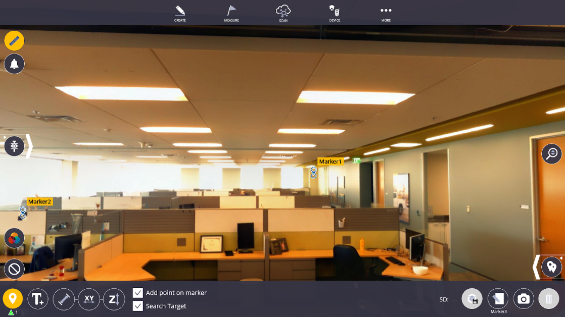 appears. Tap the Camera icon. - The software opens station view. A message appears along the bottom of the screen advising you to “Tap anywhere in the scan to point the laser”.