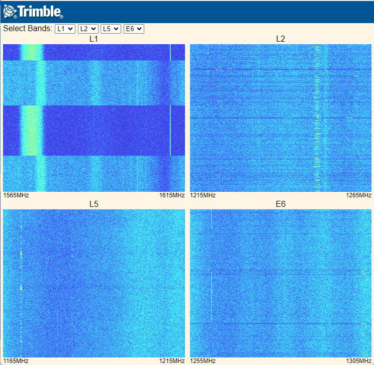 From firmware version 6.28/5.68, a Spectrogram Toolkit option is available. It enables you to perform an in-depth side-by-side analysis of the satellite bands being tracked, helping identify signal interference such as jamming (interference from external sources on frequencies so that a receiver can no longer operate) and spoofing (making a receiver calculate a false position or located where it is but at a different time).