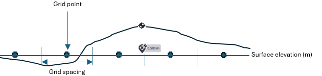 Elevation Values to represent the actual elevation of the grid points in meters (or feet) based on the reference or surface elevation, including an offset.