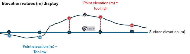 Point Elevation value (in meters or feet) is the elevation at the grid point position, compared to the surface elevation. It is:
