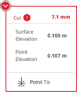 Cut value indicates the depth of material that needs to be removed from to the selected grid point elevation to bring it down to the surface elevation level.