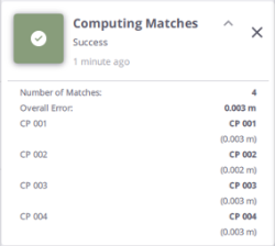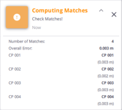 Green to notify that the Compute Matches has succeeded. All georeferencing errors must be under the defined Georeference Error Tolerance to turn the notification green.