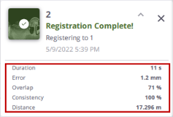 After each Automatic registration, some statistics are computed. The computed statistics and the resulting notification are here to help you inspect the transformation but do not replace a human control.