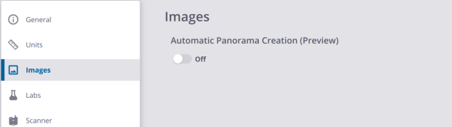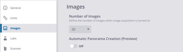 AUTOMATIC PANORAMA CREATION (PREVIEW): This option enables you to automatically create a panorama in preview quality with the captured images. See Process Images > Preview Quality.