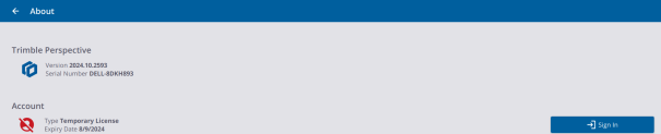 TEMPORARY LICENSE: Occasionally, you may not be able to sign in to use your Trimble Perspective subscription. This can happen if your subscription has lapsed or is locked to another controller. In this case, you can activate a two-day emergency period license to use until you can renew your subscription, or login in with a valid license, or unlock your subscription from the other controller.