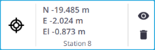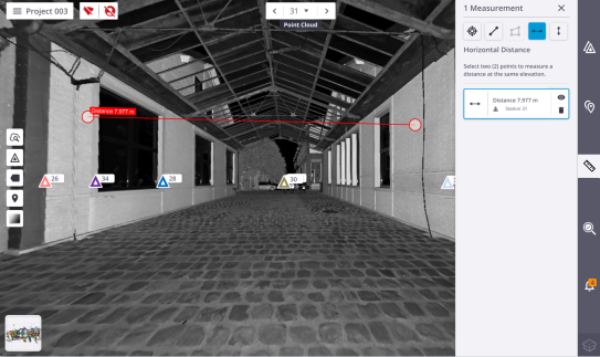 Horizontal Clearance Measurement lets you measure a 2D distance in the X Y plane (or North East plane). Tap two points in the Station View.
