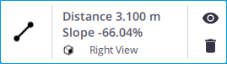 (Slope) Distance Measurement lets you measure the distance between two points and the resulting slope in percentage. Tap two points: