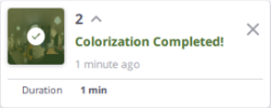 At the end of the step, a notification pops-up and summarizes the state of the step (succeeded (Green) or failed (Red)), as well as the duration.