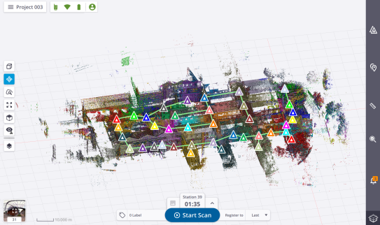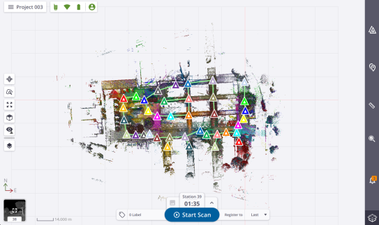 Map View: This view is where the captured scan data displays locked in 2D and from the Top View (see Map View).