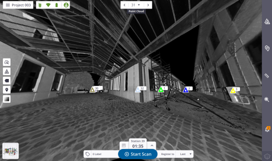 STATION VIEW: This view is where the captured scan data displays as a 2D spherical luminance (or colored) image (see Station View).