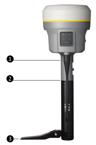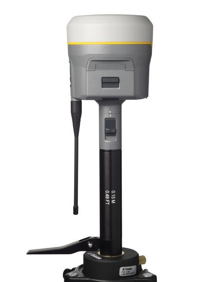 The Trimble R980 receiver uses a base station extension pole that increases the height of the receiver to allow clearance for the 450 MHz internal radio antenna and also allows for easy and accurate measurement of the base station antenna height. The extension pole includes a height measurement lever with a defined measurement point:
