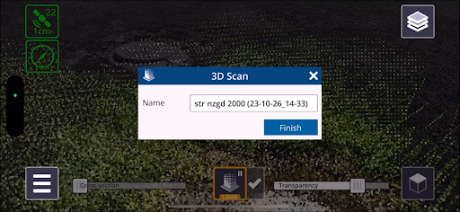 It is still possible to create georeferenced scans when working with a Manual placement or Marker placement. This allows for scanning in GNSS denied areas such as indoors or even underground. With a Manual placement, the 3D Scan region will be limited to within 5 meters (5 yards) of where the scan was initialized; with a Marker placement, the 3D Scan region will be limited to within 5 meters (5 yards) of any scanned Marker.