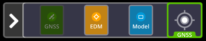 To select a different measurement mode tap the arrow to the left of the active app icon. The available modes (shown here with Measure Point + GNSS as the active app) show as: