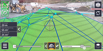 • Measure various height points within the base surface. This will create a triangulated surface in real time and is best for measuring irregular shapes such as stockpiles.