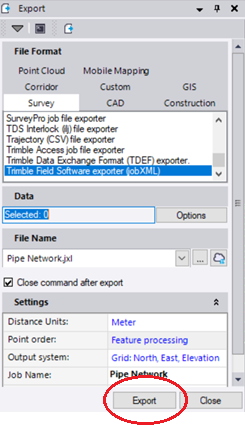 Select the Trimble Field Software exporter (jobXML).