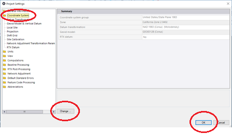 In the Project Settings window, select Coordinate System then tap Change to select your required coordinate system. Tap OK.