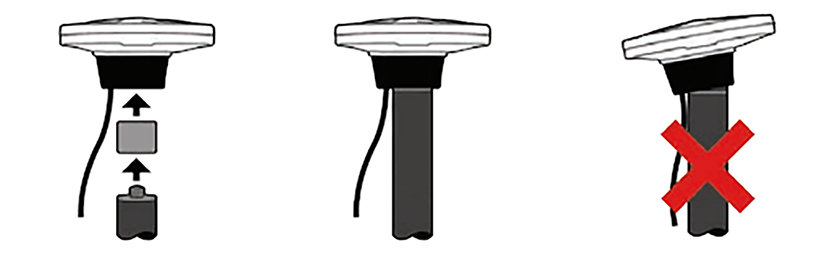 The Catalyst DA2 receiver has a convenient push-fit mount for simple attachment to any 1 ¼” diameter pole. A 5/8” x 11 thread adaptor for convenient installation/removal on standard mapping and surveying accessories is also included in the box.