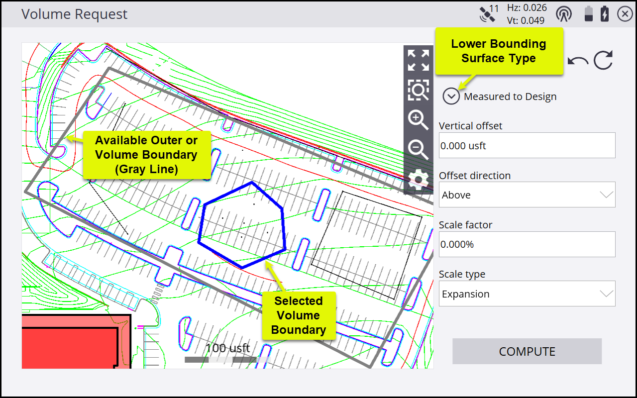 After selecting the lower bounding surface type and entering in any relevant parameters, tap COMPUTE to preview the results: