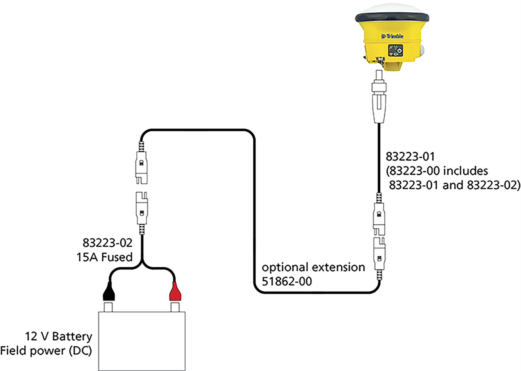 Use this SAE-to-SAE extension cable when the battery or DC power supply is greater than 2 m (6.5 feet) from the receiver. It also enables the power supply to be in a secure area.
