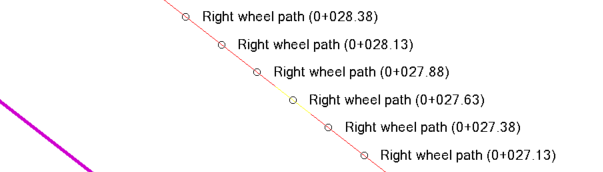 - Left/Right - Enter the distance to offset the wheel path linestrings from the selected alignment/trajectory/linestring path. Once you enter offsets and run the report, you will see the wheel paths in your Plan View (there is no preview before running the report).