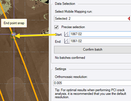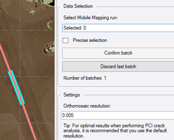 The orthorectified images can now be used for the automatic computation of crack dimensions using the Inspect Pavement Condition command.