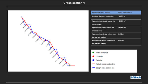 - In the Report Settings drop-down lists, select colors to display in the report for Overdig exceeded, Underdig exceeded, and Within tolerance.