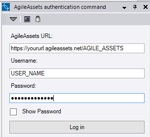 - Enter your AgileAssets URL. Enter your Username, then enter your Password and click Log in.