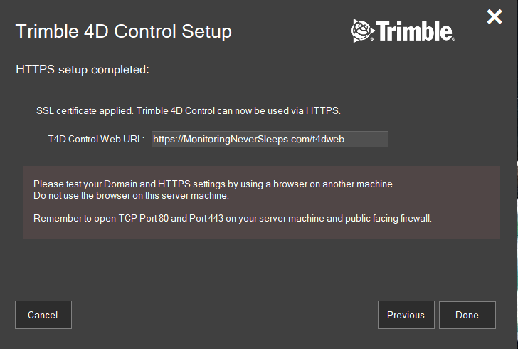 Verify Access: Open a browser and test the new T4D Web URL to confirm that HTTPS is working correctly.