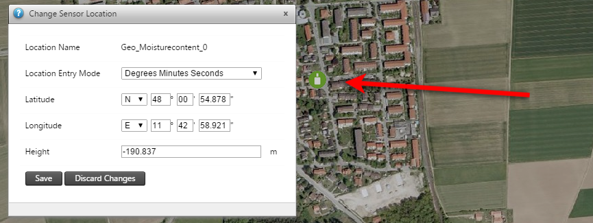 Click Save to confirm the change of sensor location. To return the sensor to its previous location, click Discard Changes.