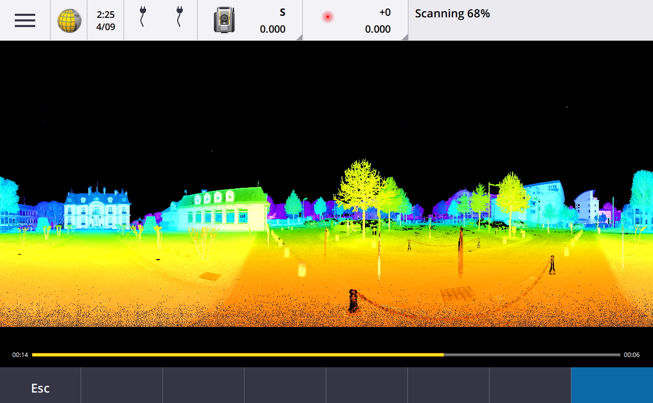 Kun laserkeilaus tehdään Trimble SX10- tai SX12 Scanning -takymetrillä-kojeella, ohjelmisto näyttää nyt laserkeilauksen edistymisen edistymispalkin sijaan.