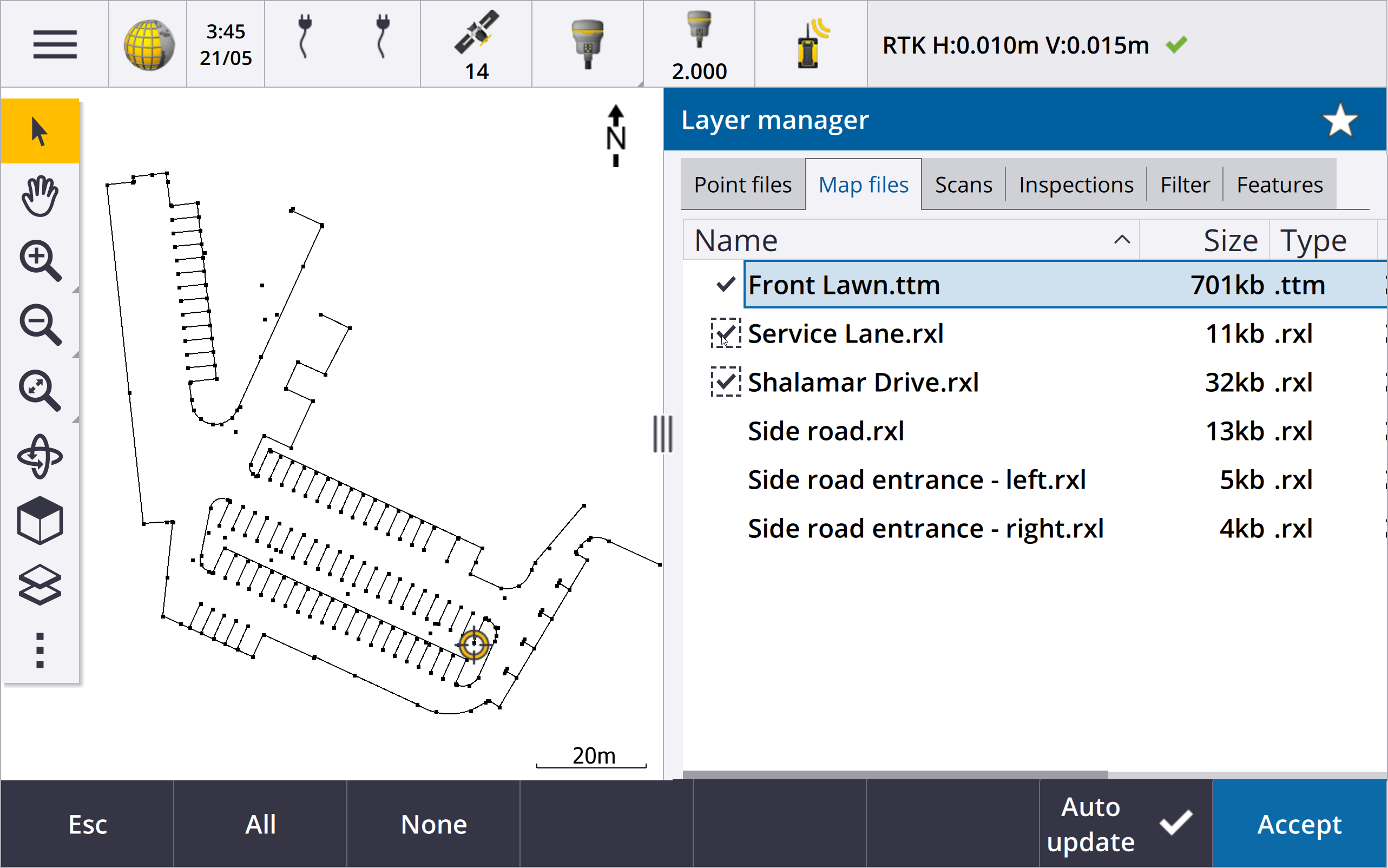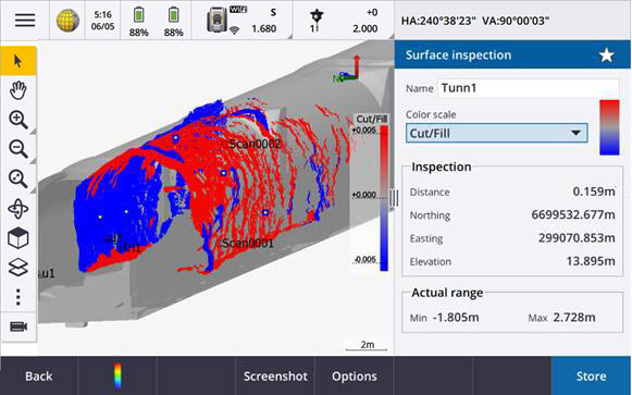 Pour de plus amples informations, consultez la rubrique Inspection de surface dansl’Aide Trimble Access.