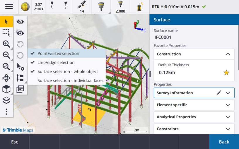 更多信息,请参阅Trimble Access帮助中的BIM模型选择模式主题。