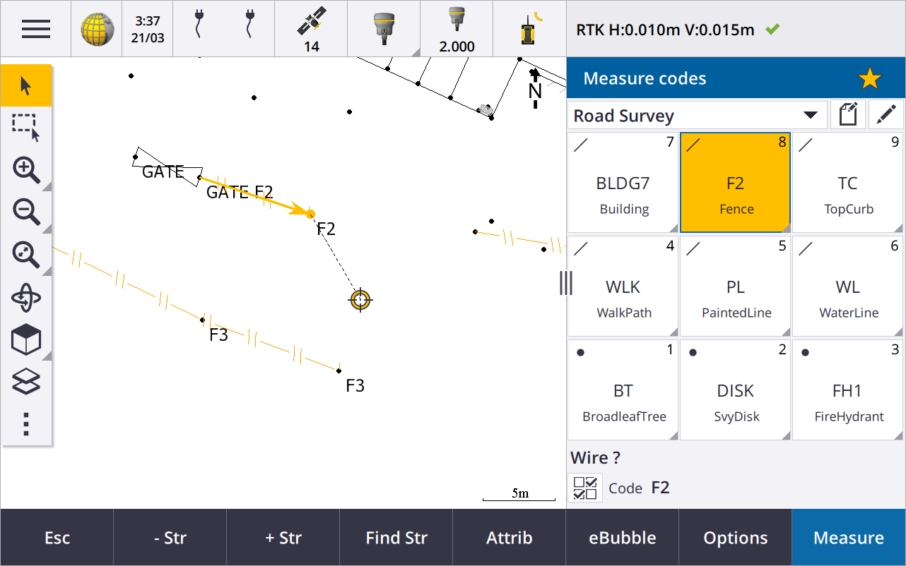 使用串联测量使用相同要素代码的多条线要素时,我们将用于增加或减少字符串编号的软键从+和-重命名为+字符串和-字符串,并将查找重命名为查找字符串。在选项中设置的字符串后缀现在适用于所有要素代码,以前可以在测量代码中为各个代码组配置不同的后缀。
