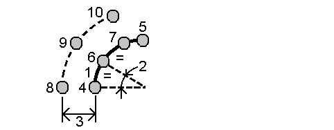Syötä Kiinteä kulma (2) sekä kaikki vaakasiirtymät (3) ja korkeussiirtymät kaaresta.