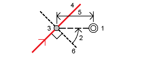 下图显示的是由向前偏斜和向右偏移所定义的一个点。待放样点(1)是从测站(3)沿着偏斜(2)的偏移(5)所定义的。偏斜值可以通过与被放样道路(4)成直角并对直线(6)向前或向后的偏斜角度差所定义,或者作为替换方式,偏斜值可以通过方位角定义。