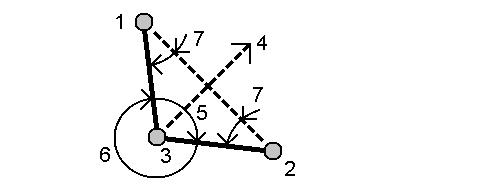 - la distancia desde el punto de la esquina a los dos puntos laterales y la distancia de un punto lateral a otro