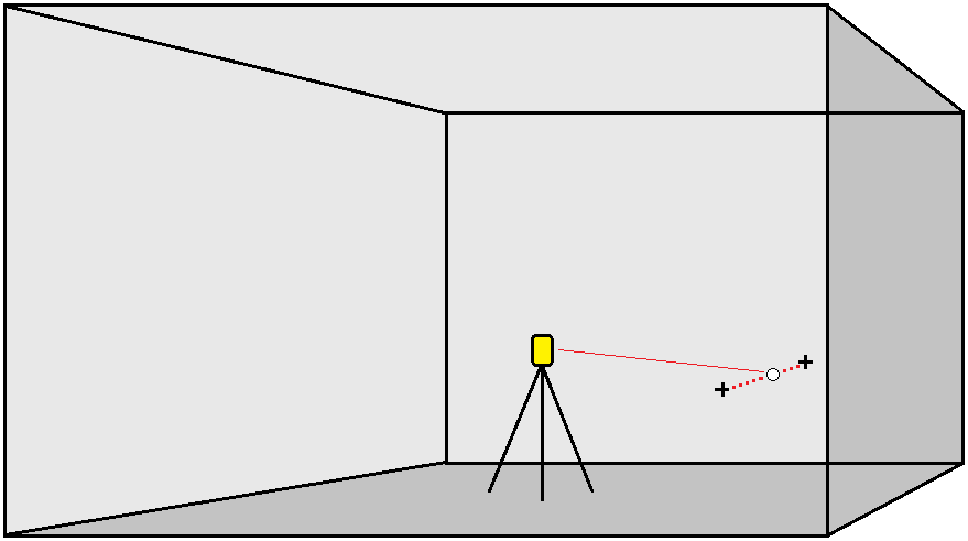 - Als het instrument een Trimble SX12 scanner total station is, wisselt het instrument naar de STD modus, de laser aanwijzer stopt met knipperen en beweegt zich naar de EDM locatie.De laser aanwijzer gaat continu branden terwijl de doelverlichting (TIL) knippert gedurende de tijd gedefinieerd in het veld Markeerpauze.Wanneer het punt is opgeslagen, keert het instrument automatisch terug naar de TRK modus en gaat de laser aanwijzer weer knipperen.