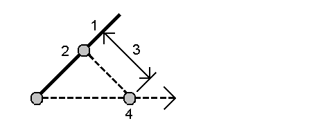 软件将计算以下值: 计算从线起点到偏移点之间的方位角 (4),以及在线和方位角 (4)之间按顺时针顺序测量的角度。