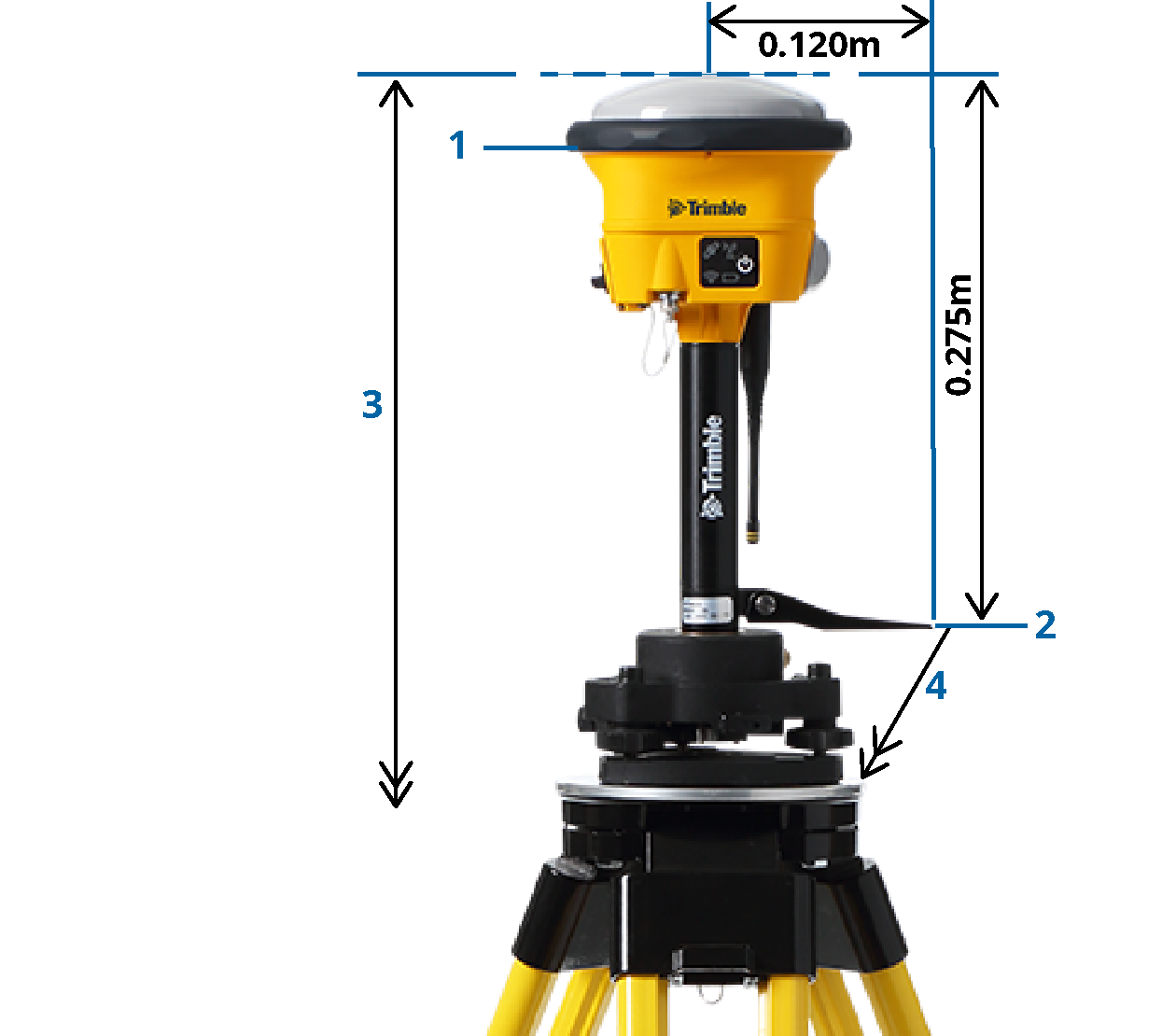 このトピックでは、測定対象フィールドがアンテナの下部またはアンテナマウントの下部、またはクイックリリースの下部に設定されている場合に、ポールまたは三脚に取り付けられたアンテナの高さを測定する方法について説明します。