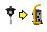 • Wenn sich das Instrumentensymbol rechts vom Prismensymbol befindet, wird das Instrument so gedreht, als ob Sie sich am Messpunkt mit Blickrichtung zum Instrument befinden.