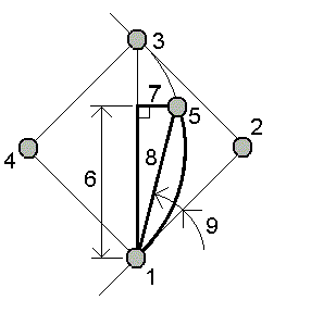 - Deflection – the deflection angle from the incoming tangent line to the current station point on the arc.