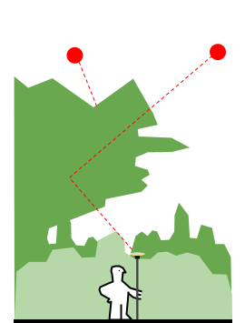GNSS technology requires direct line-of-site to GNSS satellites for optimum performance. Trees and buildings obstruct and reflect GNSS satellite signals which can lower performance and introduce errors. Trimble ProPoint technology and the design of the DA2 receiver mitigates these challenges, but you should still take care when working with GNSS near trees and buildings.