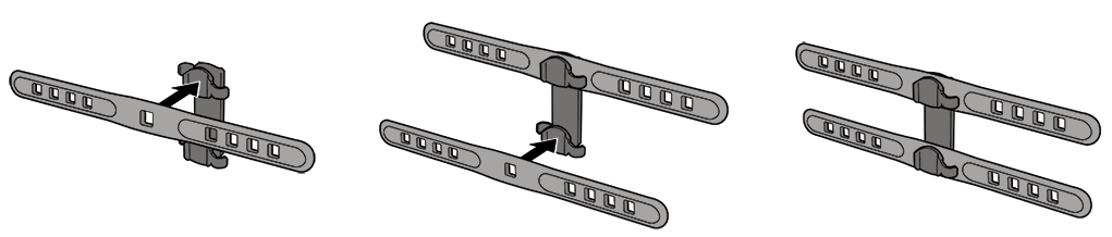 To attach the battery mount on a range pole, wrap the rubber straps around the pole and secure using the fastening clips.