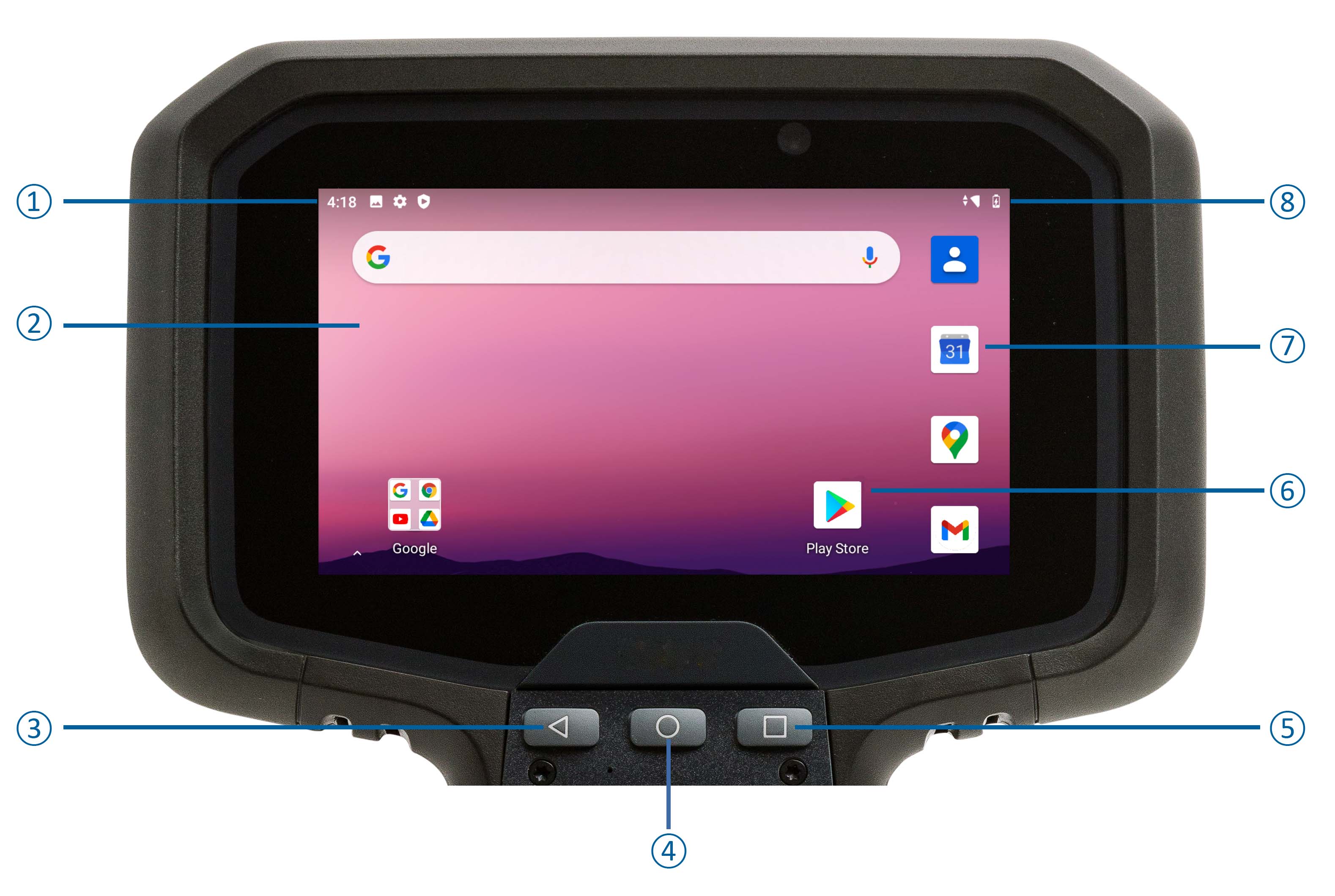When you turn on your device, the main Home screen appears. The Home screen is the primary screen for accessing all of the TSC510 controller features on the device. You can add and customize Home screen(s) by adding app shortcuts and widgets (an at-a-glance view of the app’s most important information) and customizing access to frequently used settings (Quick Settings) .The main parts of the screen are: