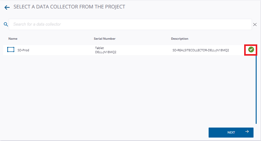 NOTE: When you import a calibration file from a data collector, any existing calibration files and geo data files in the project will be removed.You are presented with a list of the data collectors in the project, if there are any, or the data collectors in the account.