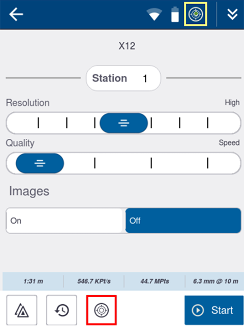 The level bubble in the status bar will dynamically update as the scanner is leveled.
