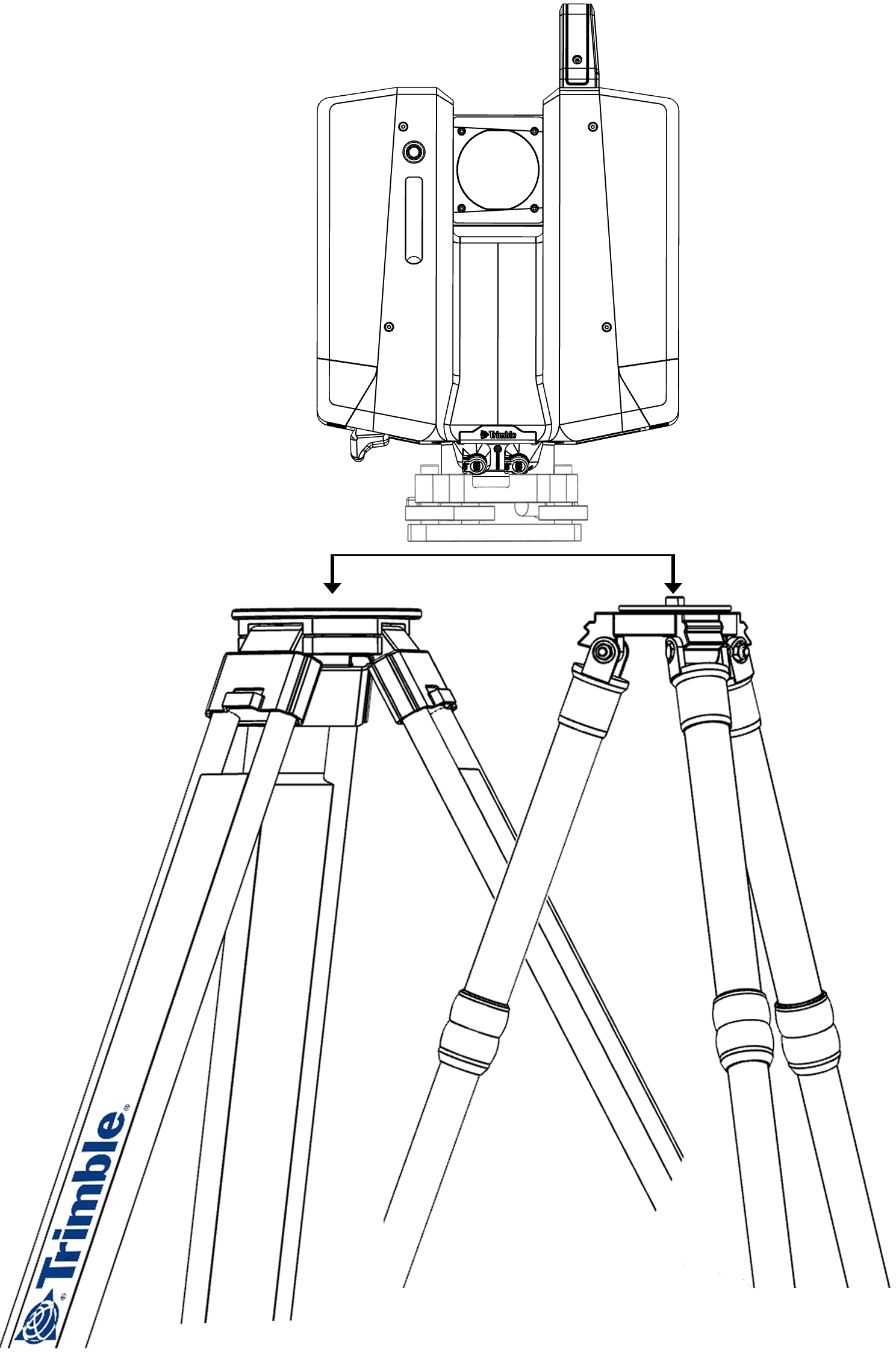 Place the scanner on the tribrach and secure it with the tribrach’s locking lever.
